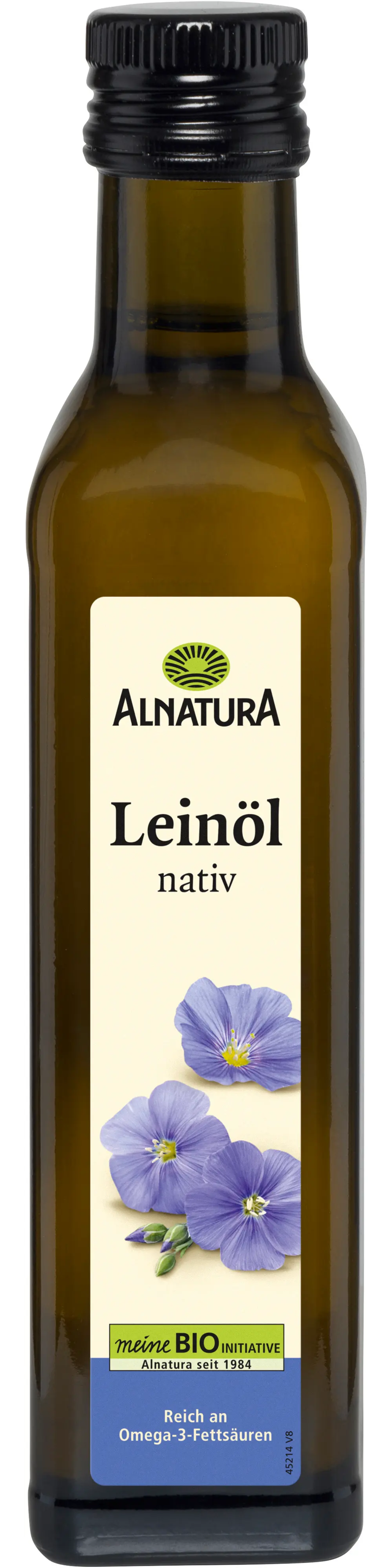 Flaxseed oil, also known as linseed oil, is obtained from flaxseeds, the seeds of an old crop that transforms fields into a sea of beautiful, delicate blue flowers. It impresses with its nutty taste and typical bitter notes, contains plenty of omega-3 fatty acids and is prized as one of the highest quality vegetable oils! It is not recommended for use in cooking and should be only eaten cold. Drizzle some of this flavourful oil on salads, freshly steamed potatoes or fresh cheese (quark). Add it as a topping on rice or vegetable dishes. Alnatura's organic flaxseed oil is gently cold-pressed.