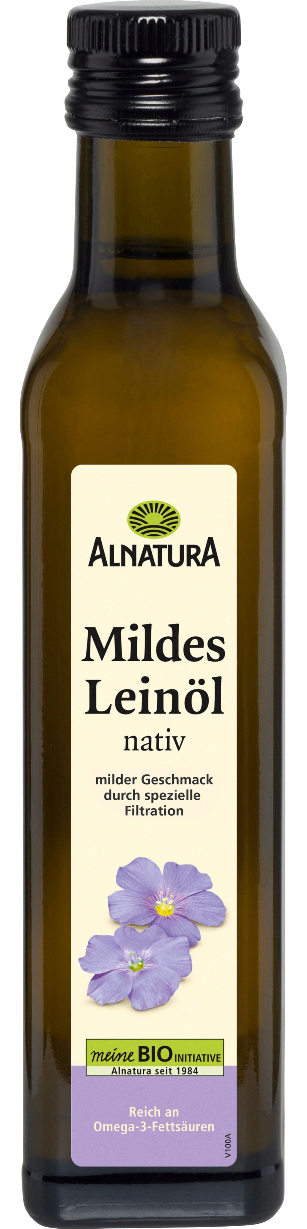 Due to its mild flavour, Virgin Mild Organic Linseed Oil by Alnatura is highly versatile. The bitter flavour components typical of linseed have been removed through a special filtration process. Consequently, the oil is a perfect accompaniment to salads and jacket potatoes with curd cheese, as well as yoghurt, muesli, or spreads. It is rich in omega-3 fatty acids.
