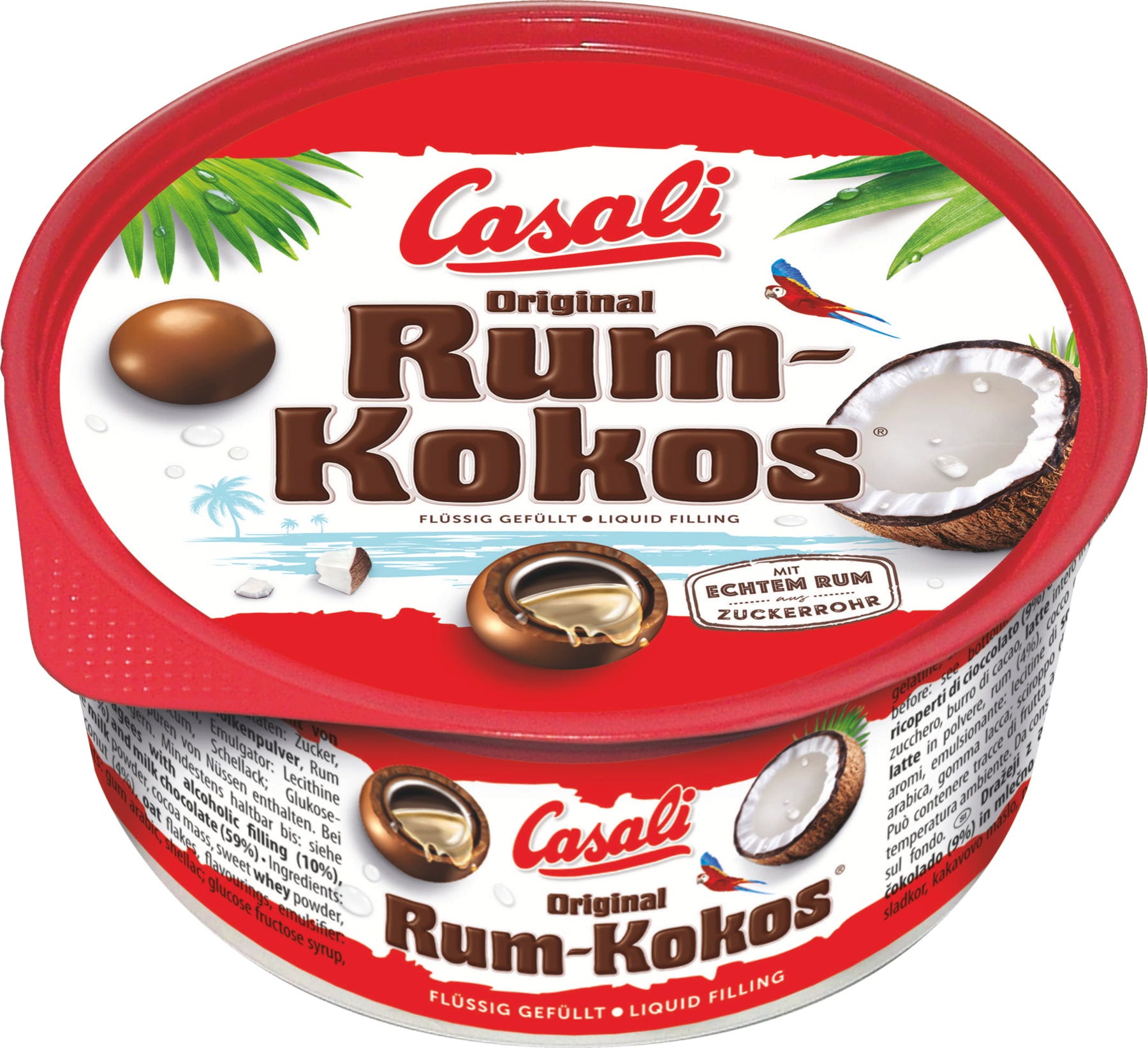 This sweet classic by Casali is wrapped in delicately melting chocolate with a liquid core of Caribbean rum, which is then enveloped by a layer of finely grated coconut. Enjoy summer-y feelings with every bite!