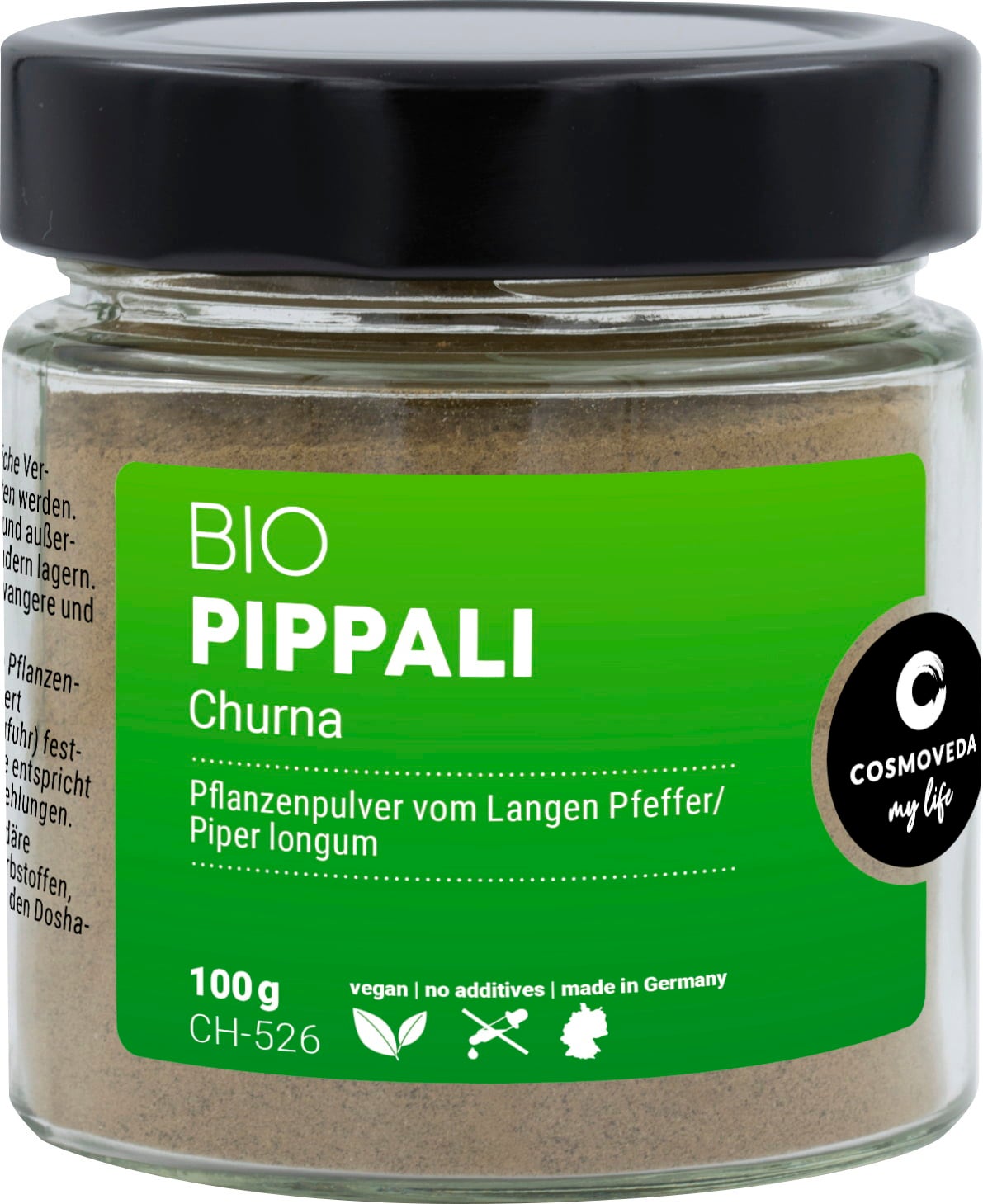 Pippali - Piper longum - is a long-peppered, slender, aromatic climber with perennial woody roots and 2.5-3.5 cm long, 5 mm thick fruit that have a blackish-green coluor. The ripe and unripe fruit as well as the roots are used in the Ayurvedic diet.