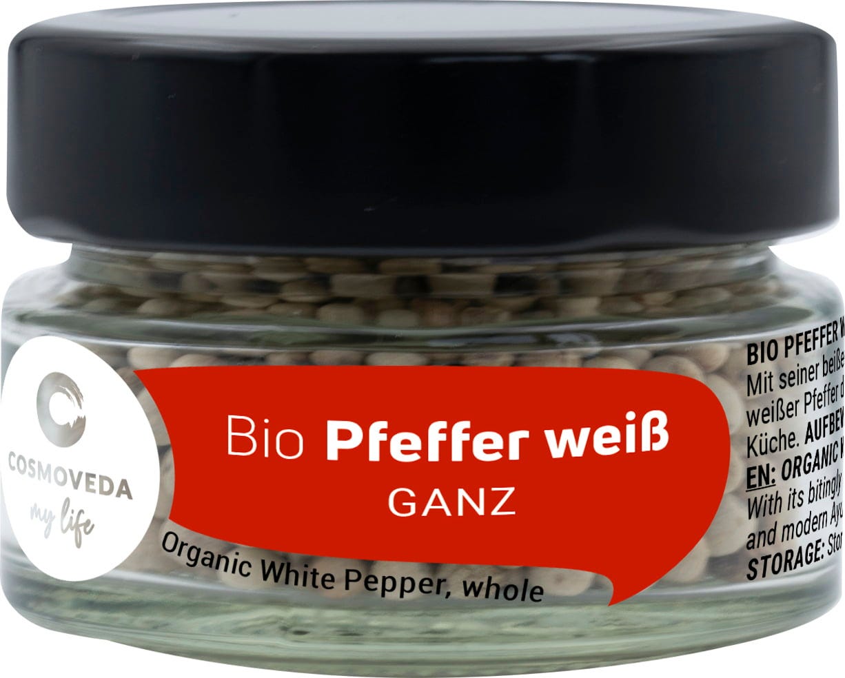 English reviews written for Cosmoveda Organic Whole White Pepper