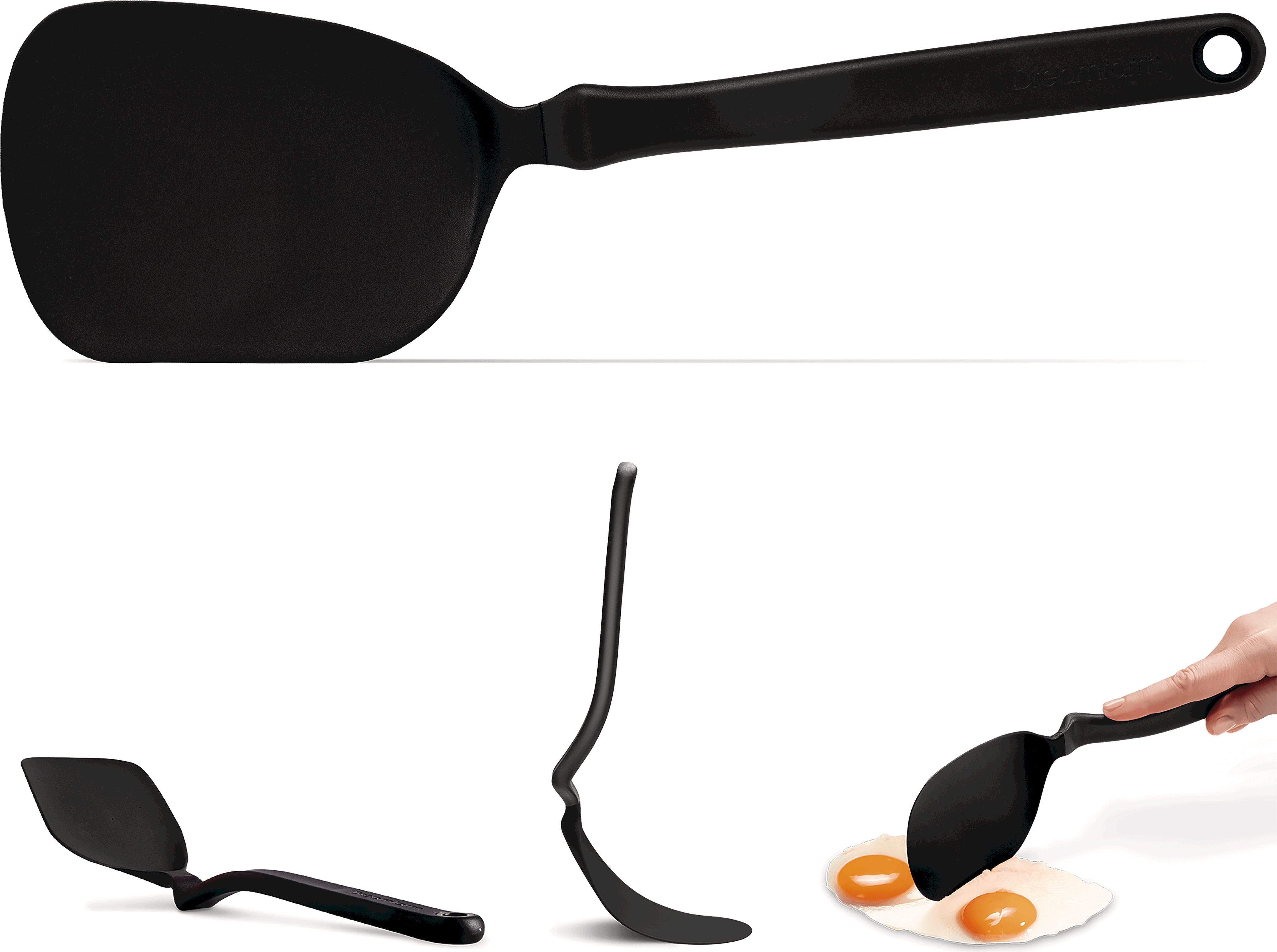 The Chopula Flexible Turner by Dreamfarm is a clever spatula featuring a large, flexible head that slides effortlessly under any food. Its unique shape allows you to reach precisely into every corner of your pans and bowls. Thanks to the signature "sit up" bend in the handle, the head stays elevated off the counter when set down, ensuring maximum cleanliness in your kitchen.