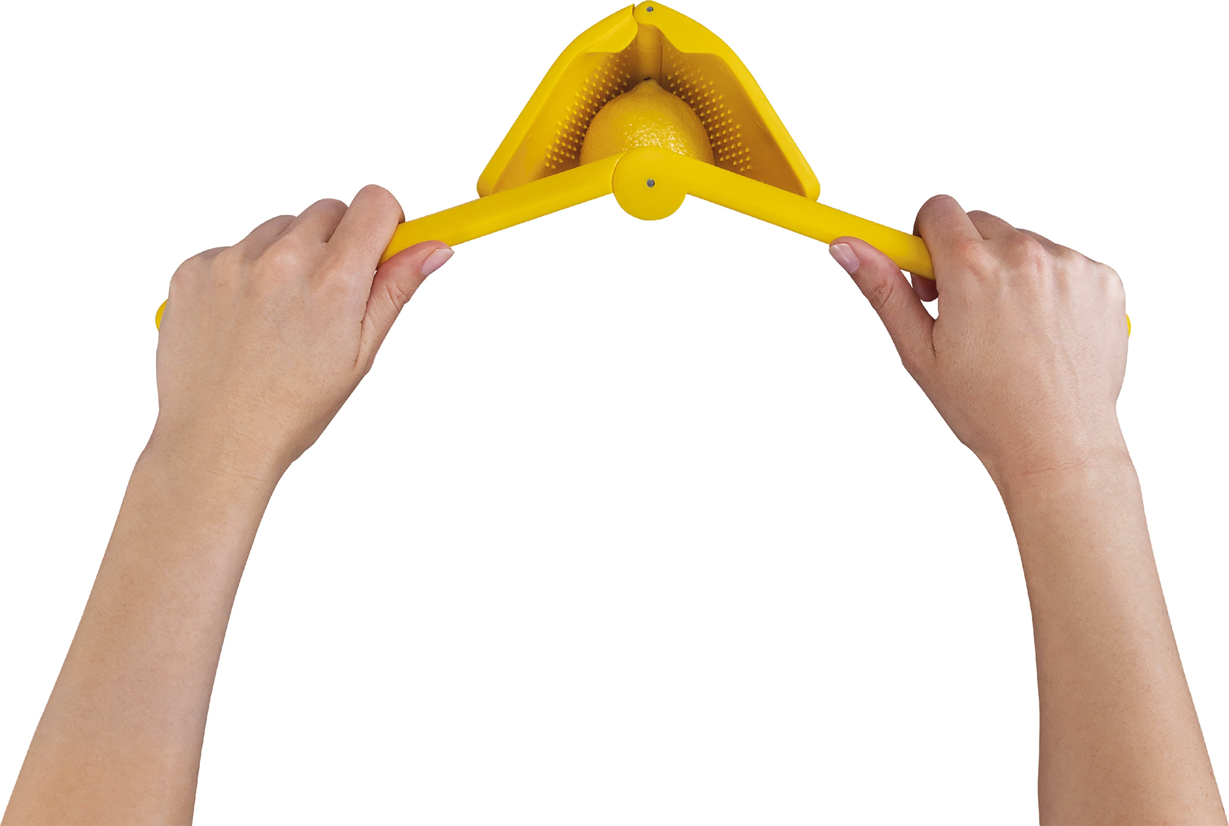 - Presses fruit from the outside and inside