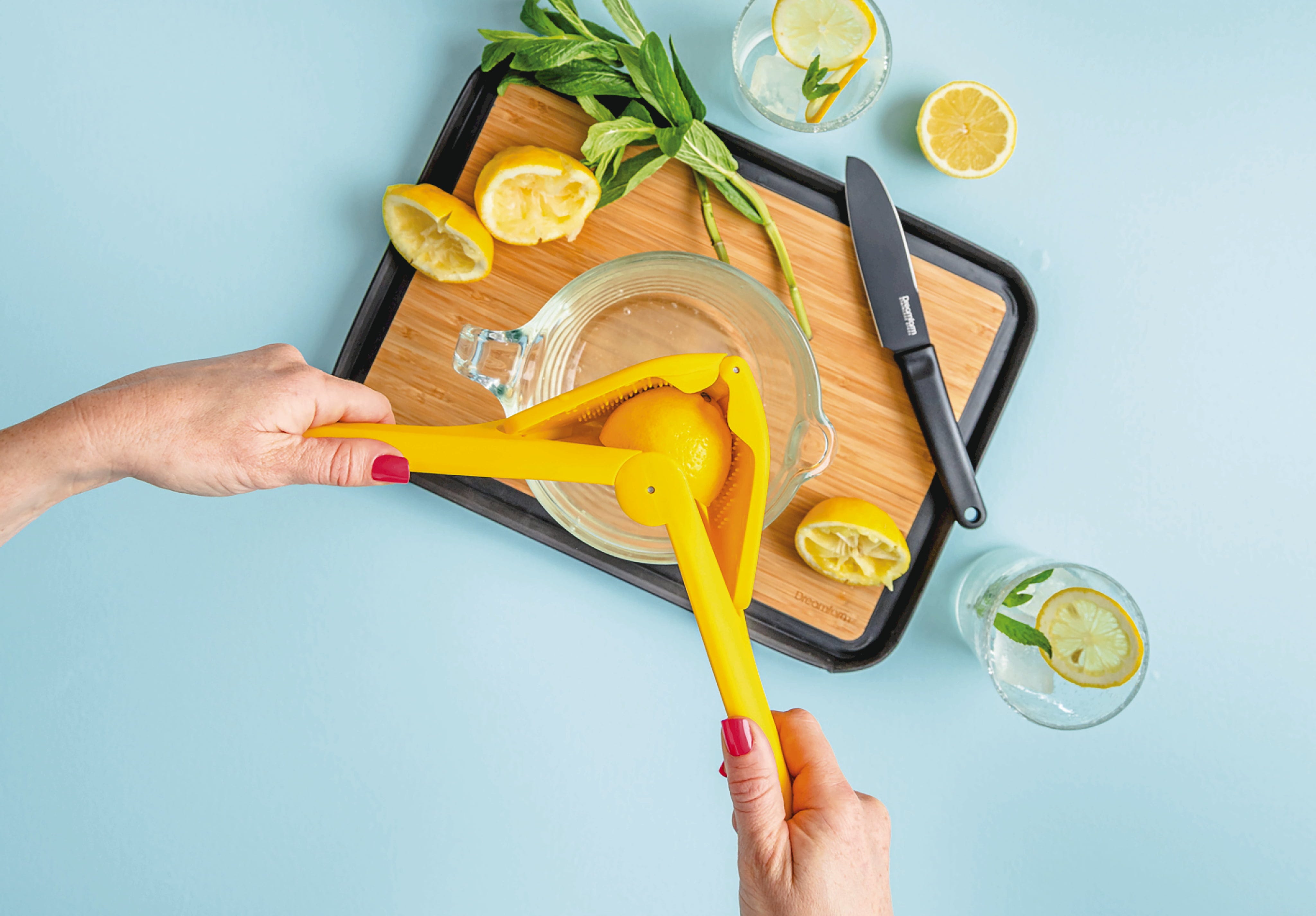The Fluicer Juicer by Dreamfarm is arguably the most efficient way to juice citrus fruits! Its innovative folding mechanism squeezes the fruit from both the inside and outside simultaneously to extract the maximum amount of juice. Thanks to the long handle, you benefit from powerful leverage for effortless juicing.