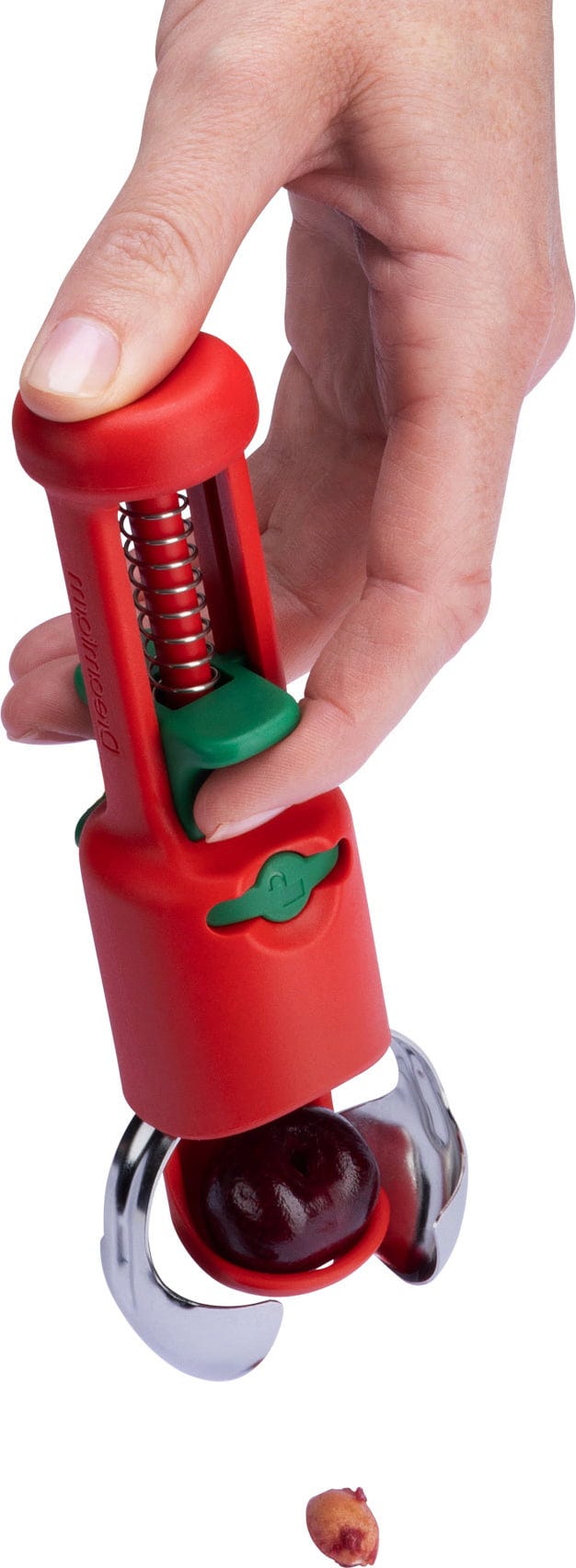 With the Hullapit Cherry and Olive Pitter by Dreamfarm, you gain an ingenious 3-in-1 tool that makes hulling strawberries effortless and pits cherries or olives in an instant. Thanks to the precise, tapered stainless steel blades, even unsightly blemishes on berries can be removed cleanly, while the spring-loaded plunger ejects stones directly into the integrated collection chamber.