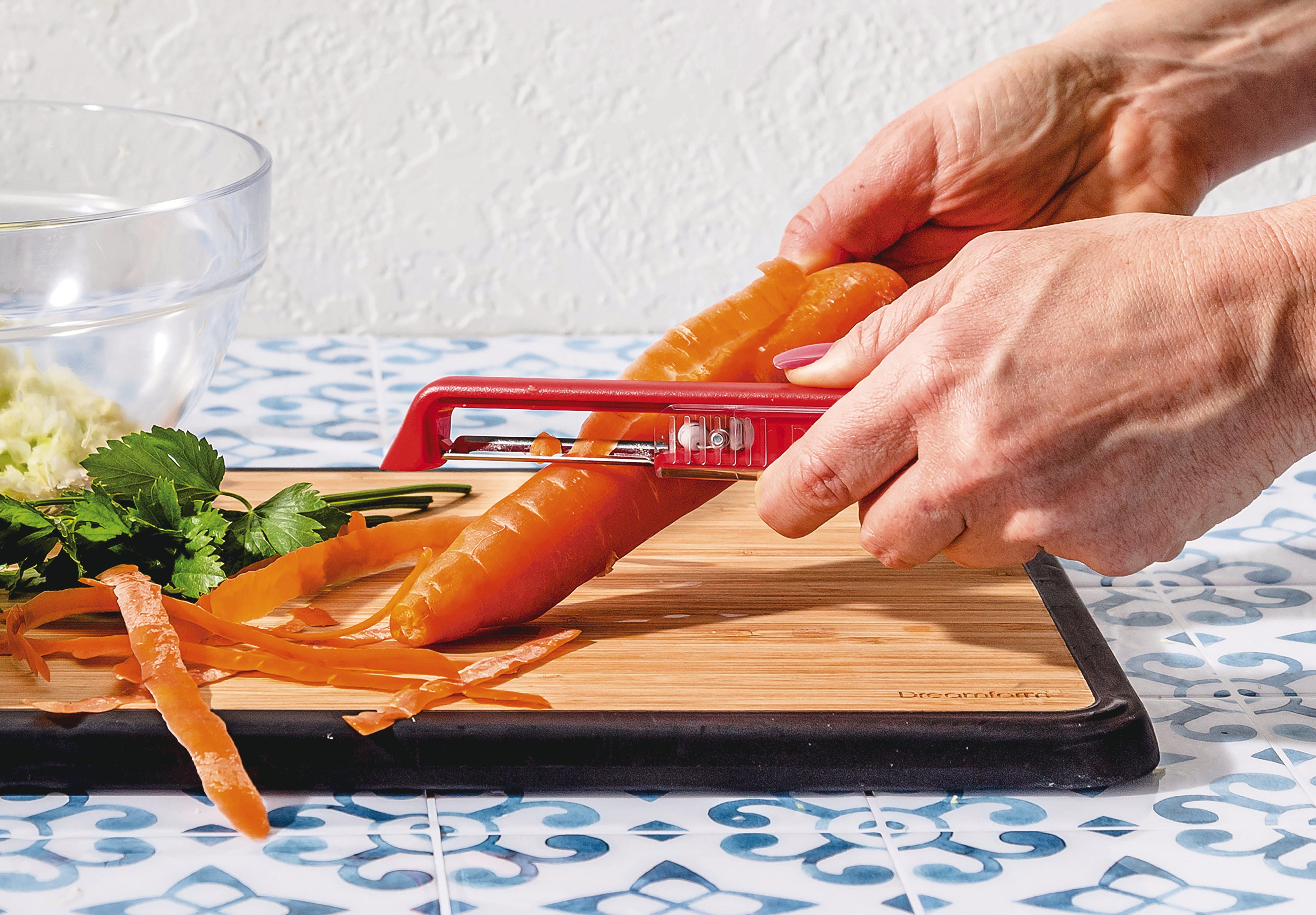 The Sharple Peeler by Dreamfarm features a razor-sharp Japanese stainless steel blade, mounted on a pivoting head to minimise food waste. The real standout is the innovative safety cover: every time you open or close the guard, a built-in ceramic ball sharpener automatically hones the blade. This ensures you glide effortlessly through fruit and vegetable skins every single time, while the integrated potato eye remover disposes of blemishes in an instant. Perfectly suited for both right- and left-handed users, this ergonomic tool is also dishwasher-safe for a hassle-free cleanup.