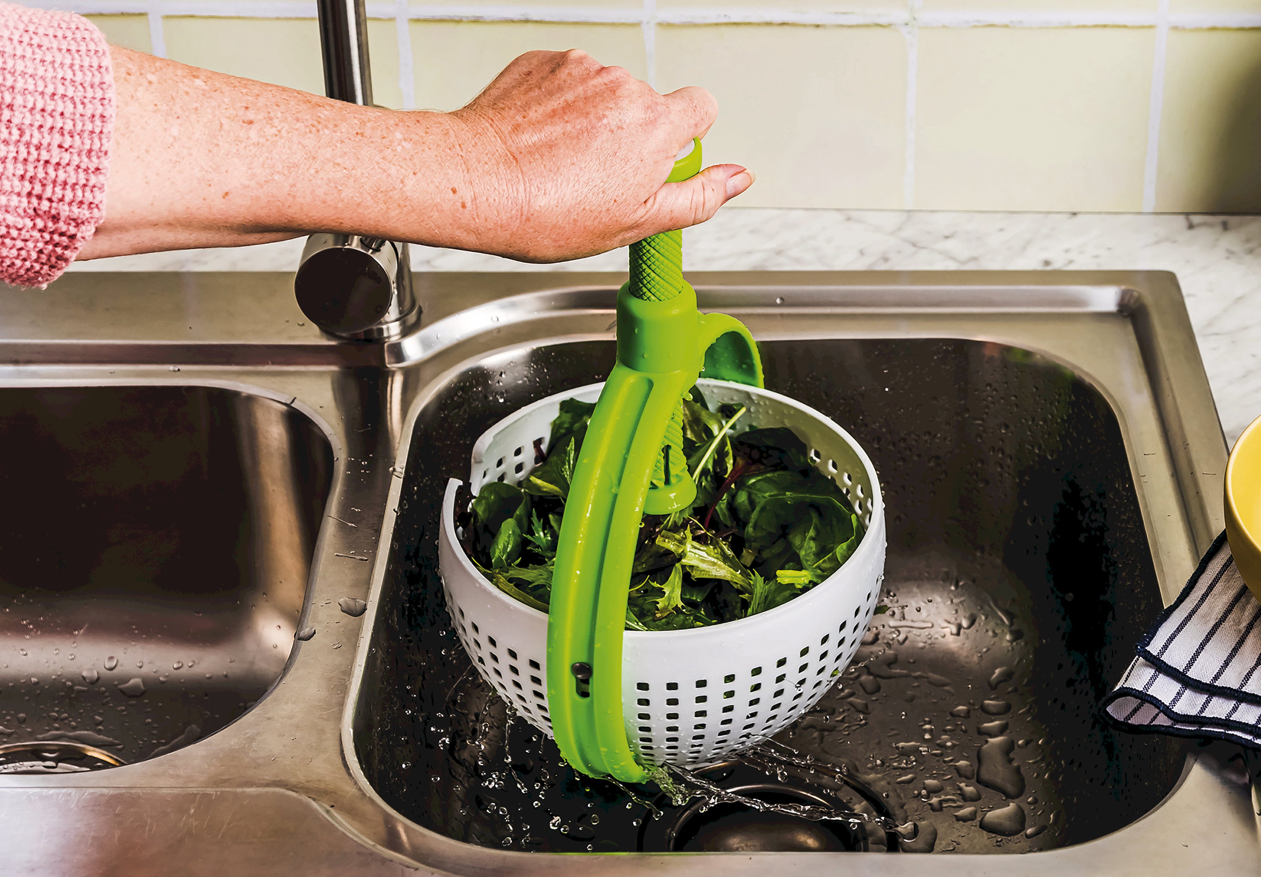 Dry washed salad greens at top speed!