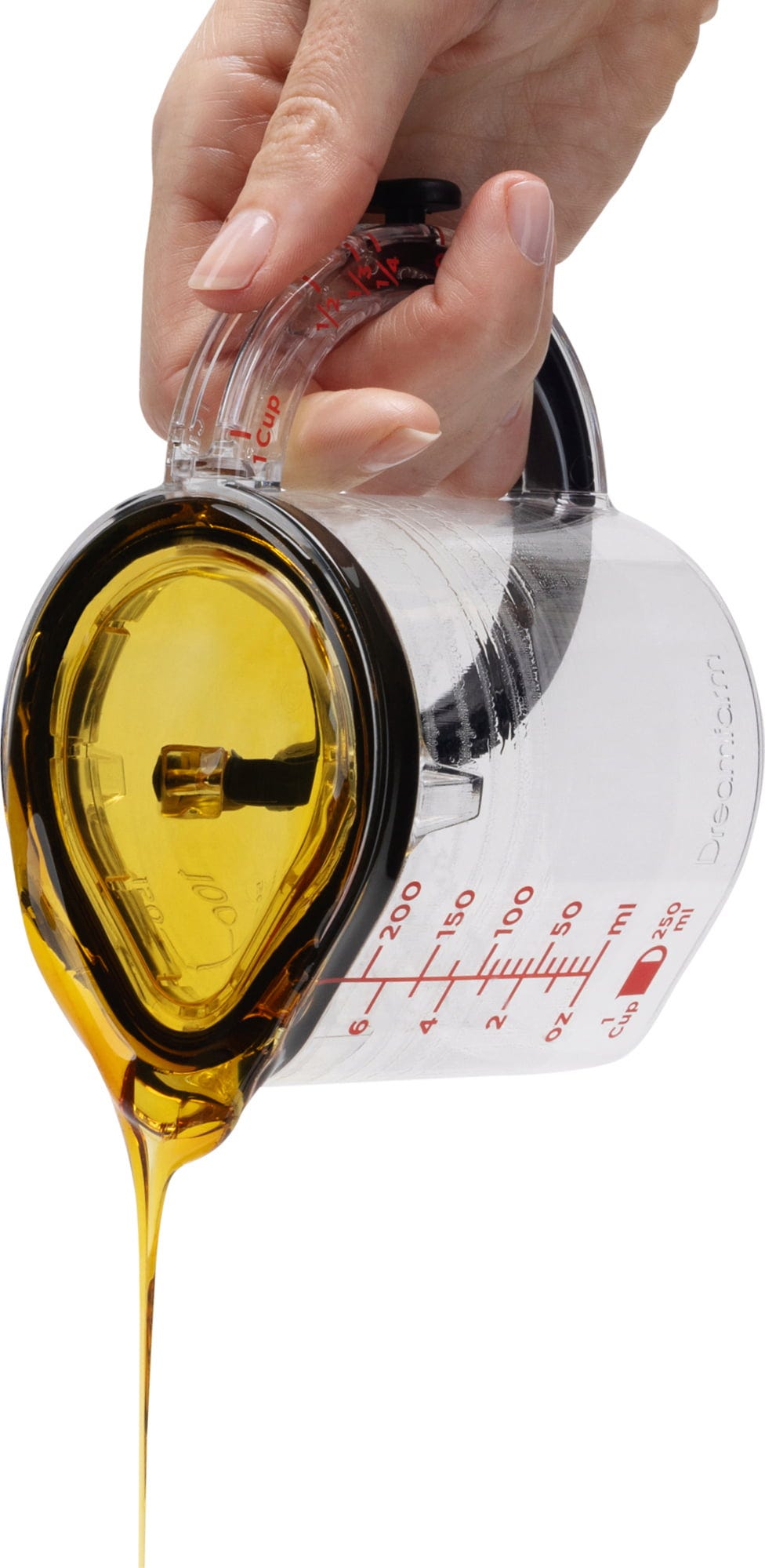 Whether you need to measure flour for a cake, portion milk precisely, or add viscous syrup – the Upcup 4-in-1 Measuring Cup by Dreamfarm is the ultimate companion for every recipe! This clever kitchen essential features a sliding base that adjusts seamlessly to your needs, allowing for exact measurements in both millilitres and practical cup units.