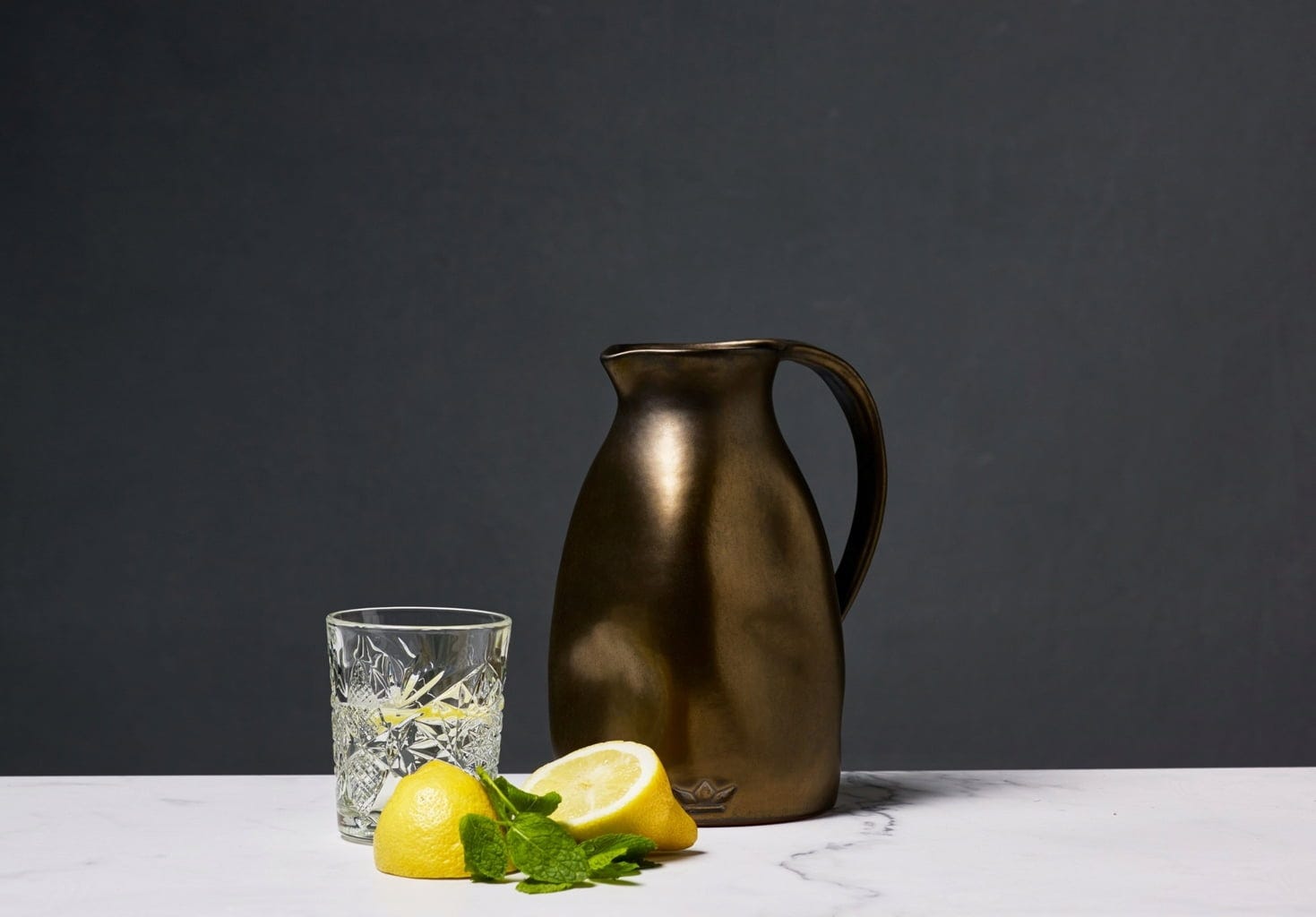 Dutchdeluxes Ceramic Water Jug in Dented Look, Platinum matte