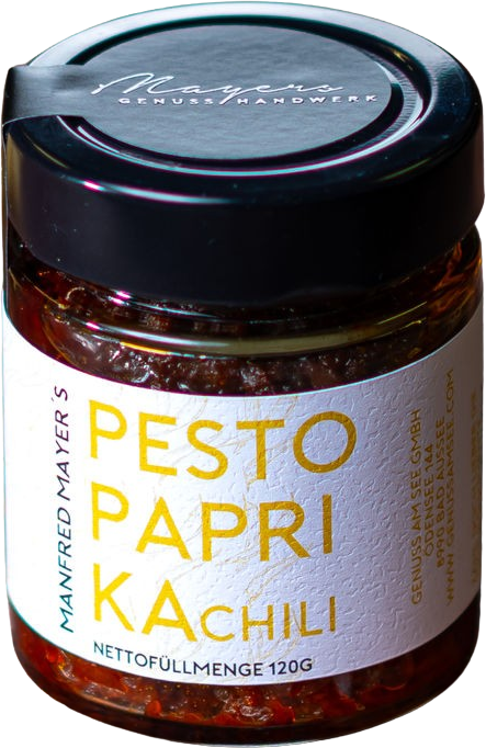 This pesto rocks any trendy grill night or party and makes grilled meat or barbecued cheese hellishly good, but is not as wild as it sounds. The fruitiness of chili shows off the maturity of the cheese to better advantage. It is perfect for raclette or fondue - always party ready.