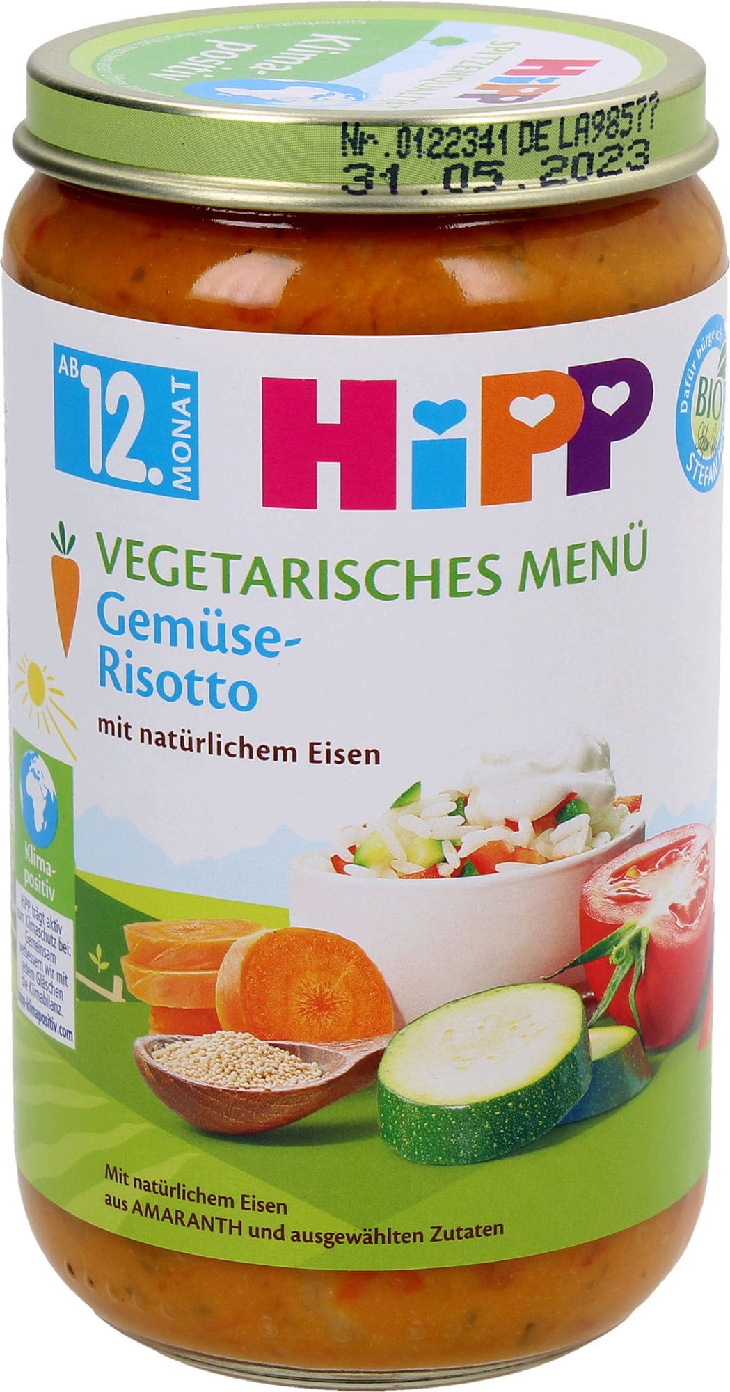 The Vegetable Risotto contains important nutrients such as iron and omega-3 fatty acids. The salt content is adapted to the needs of young children and reduced accordingly. It contains no artificial flavours, colours or preservatives.