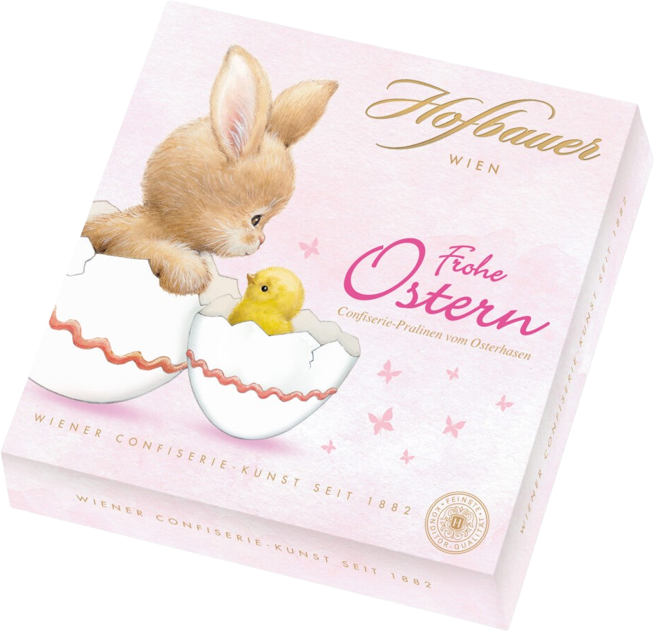 Enjoy Viennese confectionery at its finest with Hofbauer's "Happy Easter" Edition. Each praline is crafted with meticulous skill and detail, creating little moments of indulgence just for you. Inside the box, you’ll discover three beautifully designed Easter creations, each as beautiful and delicious as the next - a delightful assortment for festive Easter treats.
