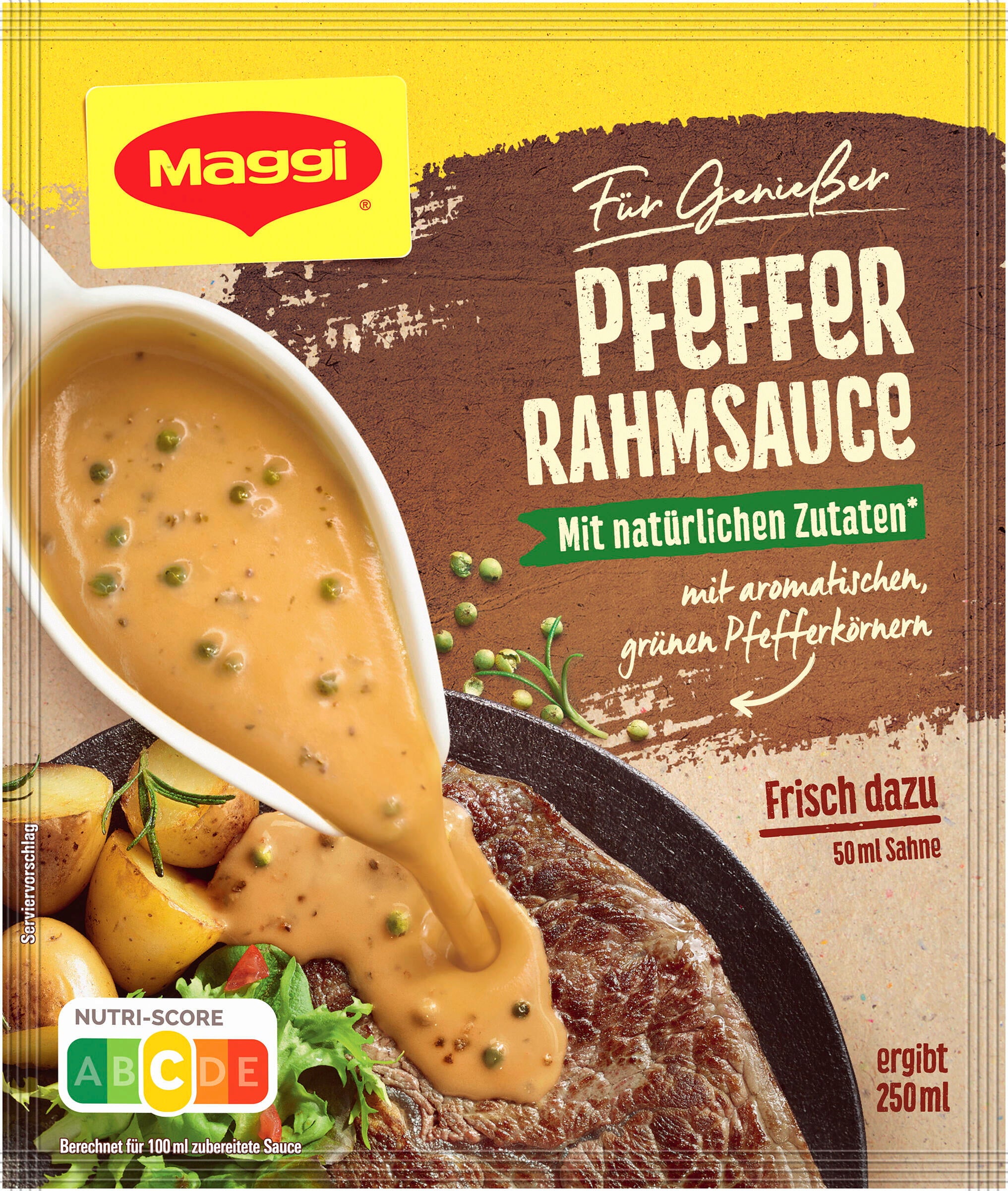 Maggi's pepper cream sauce is the ideal accompaniment with meat, bread dumplings or vegetables. Savoury onions and green peppercorns add a hearty, piquant aroma to the sauce. Whether served with steak, pork fillet or meatballs, it adds the perfect finishing touch. With minimal effort, you can create a rich, aromatic sauce that elevates any dish.