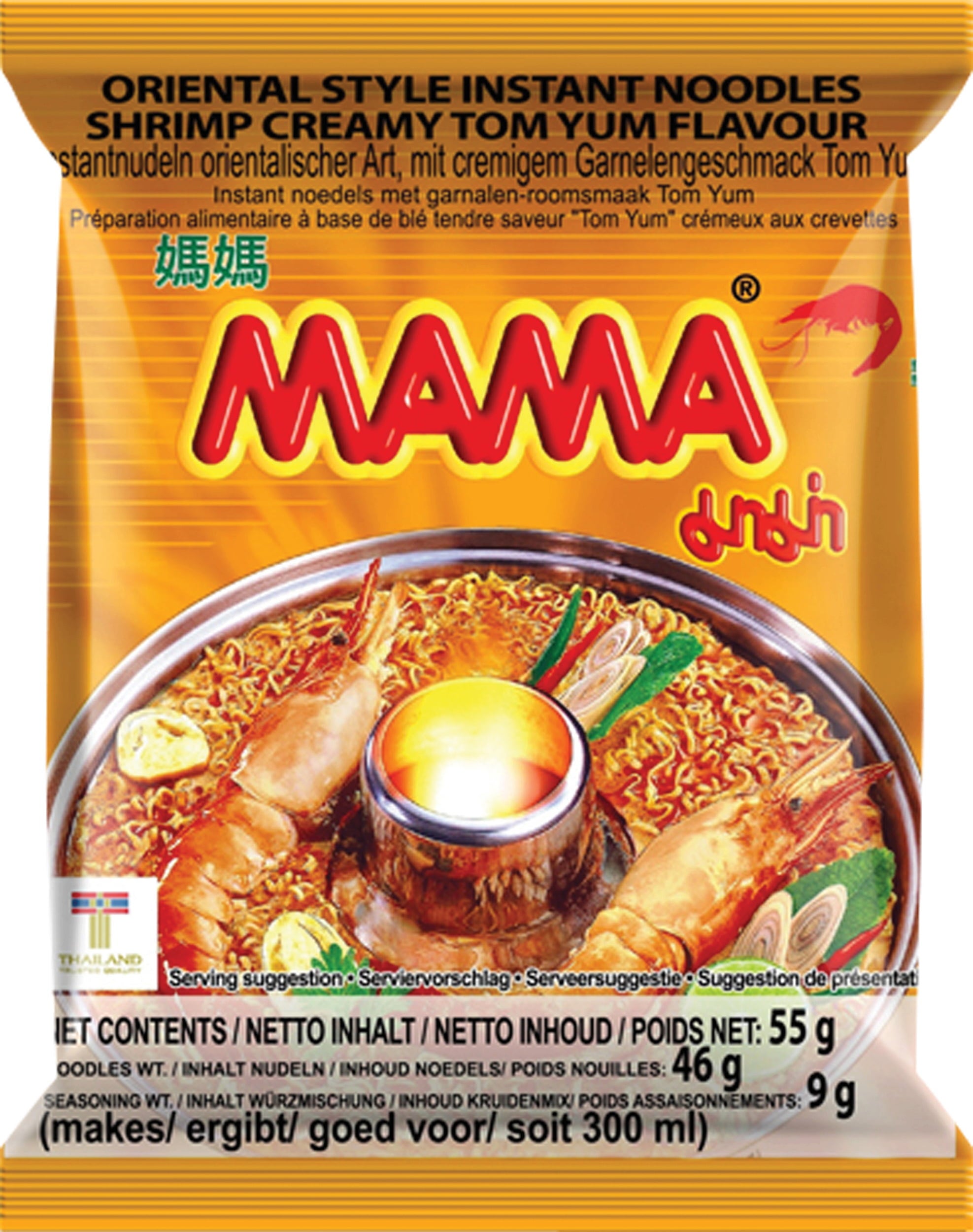 MAMA Instant Noodles - Creamy Shrimp Tom Yum flavour combines the classic Thai Tom Yum experience with a smooth, creamy texture and rich aromas of shrimp. Enjoy the spicy, tangy and aromatic instant noodle dish in just minutes - the perfect choice for a quick and delicious meal with authentic Thai flair.