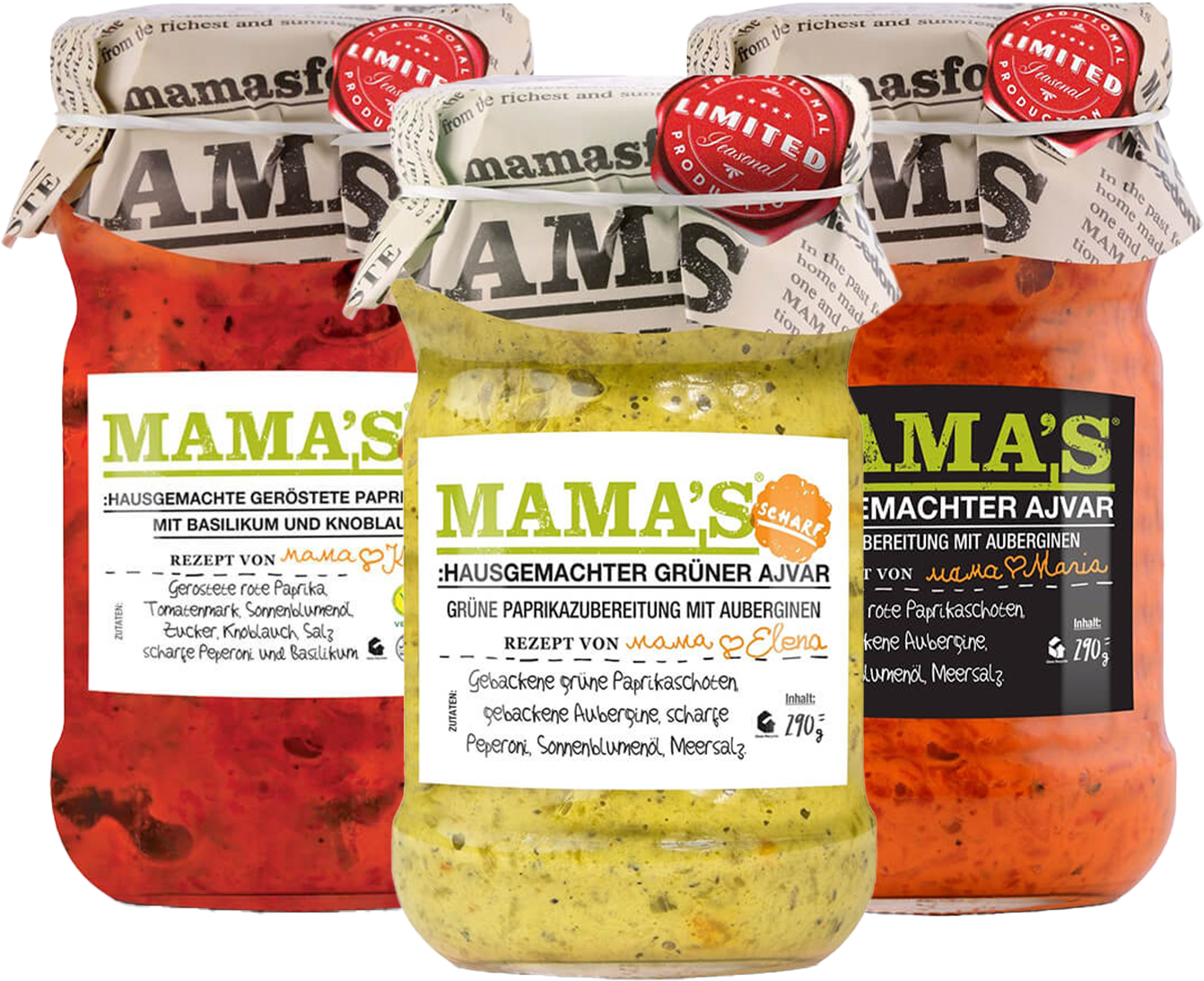 55,5 % Red pepper (grilled), 39,5 % Tomato paste, 1,6 % Sugar, 1,5 % Sunflower oil, 1,1 % Salt, 1 % Hot Peppers, 0,5 % Garlic, 0,2 % Basil