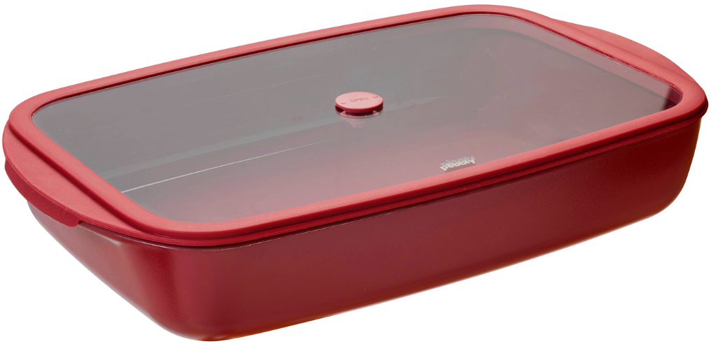Pebbly Rectangular Glass Casserole Dish with Glass Silicone Lid, 3.6 L, Cherry