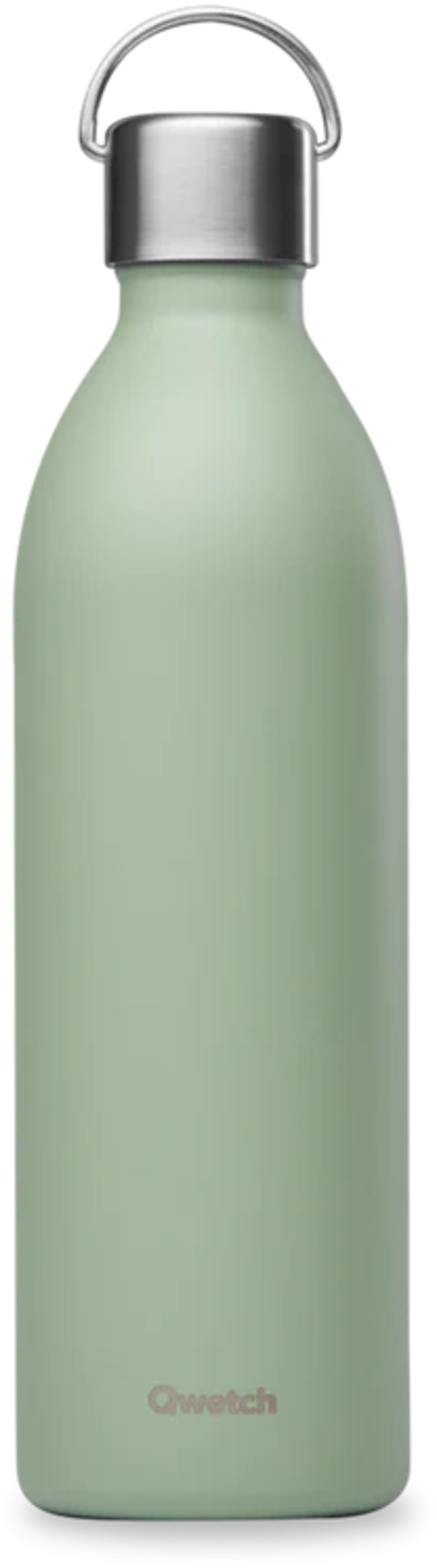 The ACTIVE stainless steel insulated bottle by Qwetch is BPA-free and keeps hot drinks hot for up to 12 hours. The cap has a compact handle.