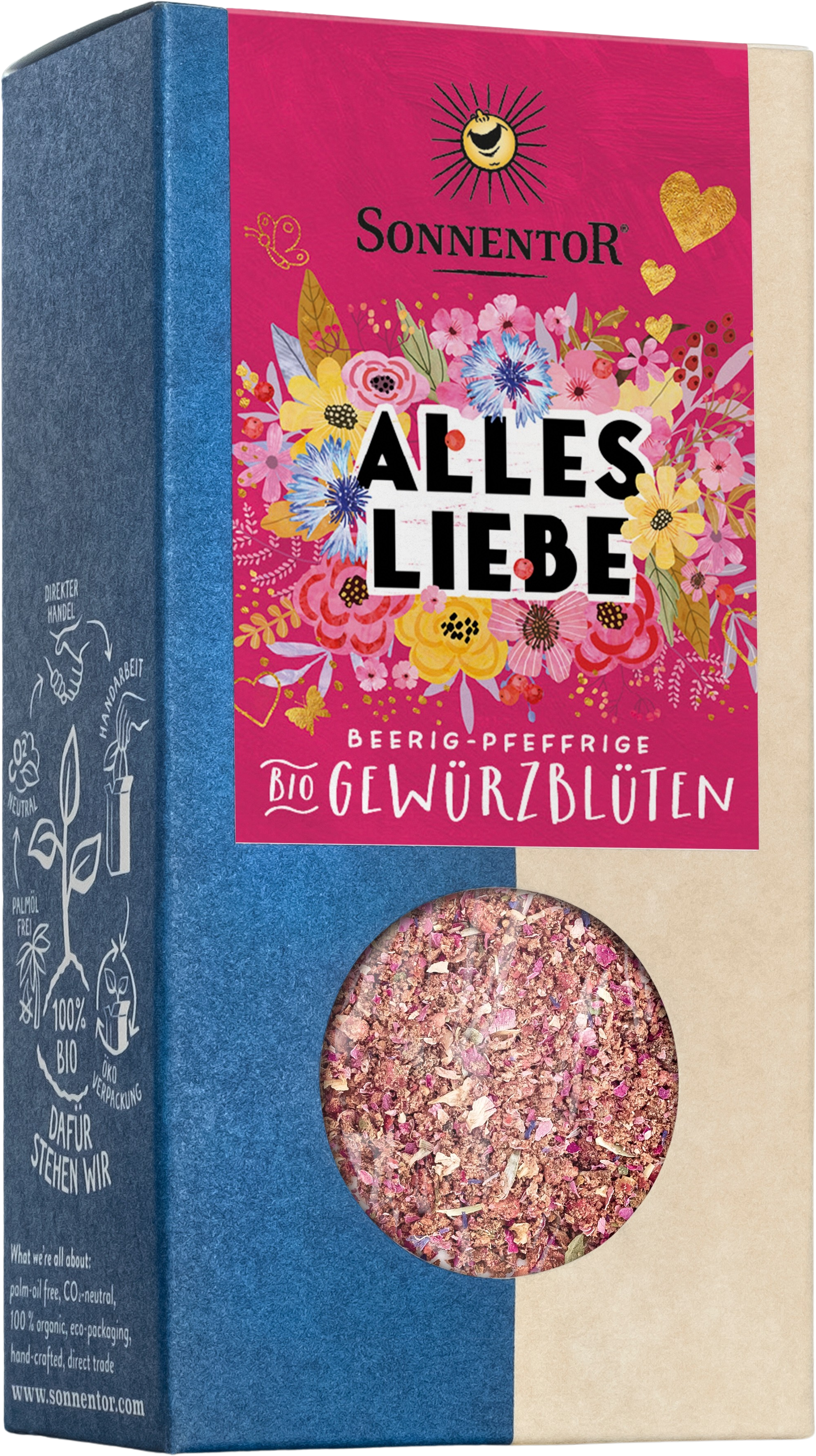 As variable as love herself, pink pepper seasoning adds a real kick to this blend! The mixture goes well with sweets as well as acidic foods. This blend adds a fine flowery, fruity, peppery and creamy vanilla taste to all of your dishes.