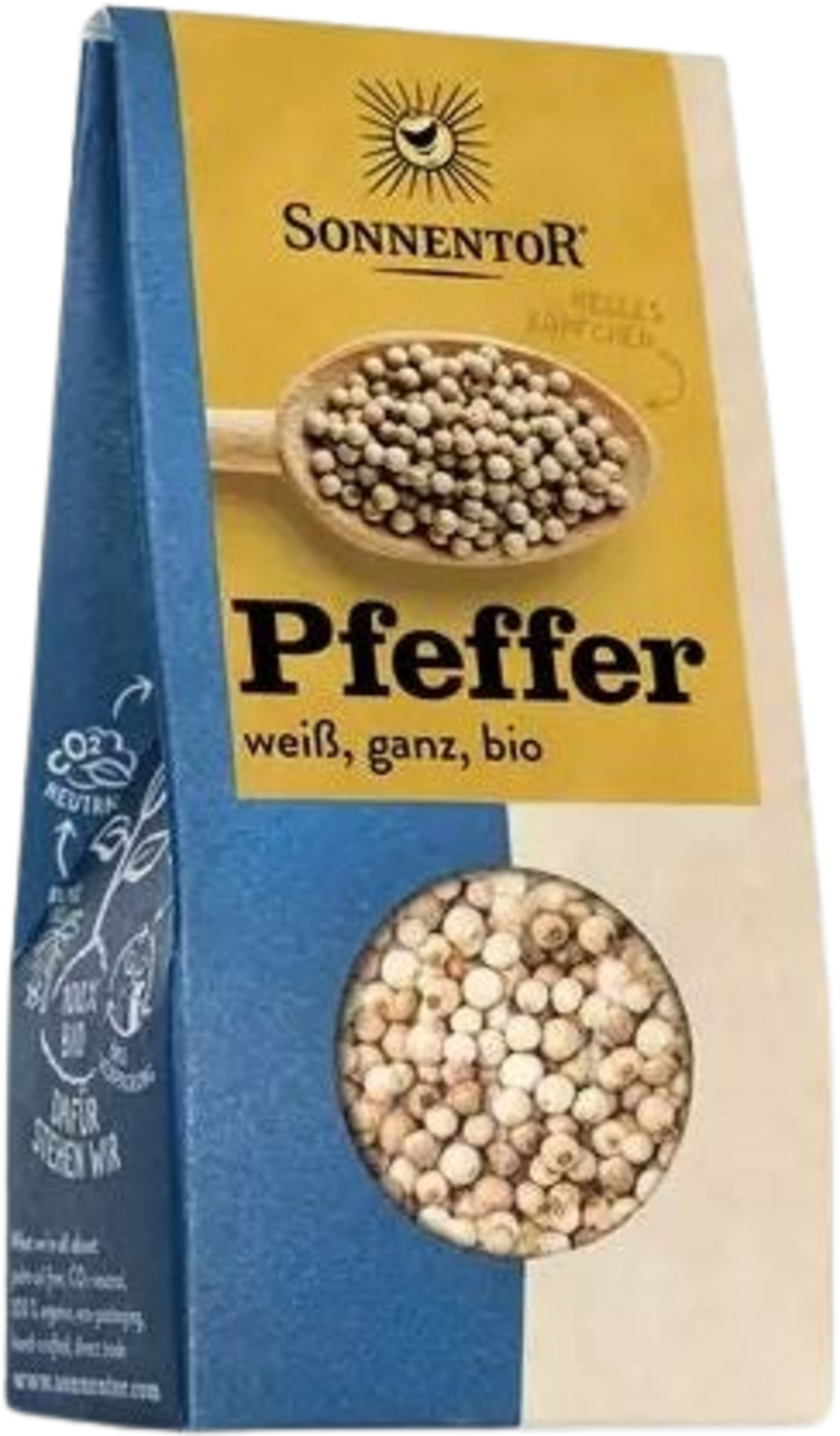 To create white pepper, ripe black pepper fruits are harvested and then soaked in water for about a week. The mesocarp, the outer shell, disintegrates and is separated from the endocarp. White pepper therefore contains all the spiciness of black pepper and is less aromatic.