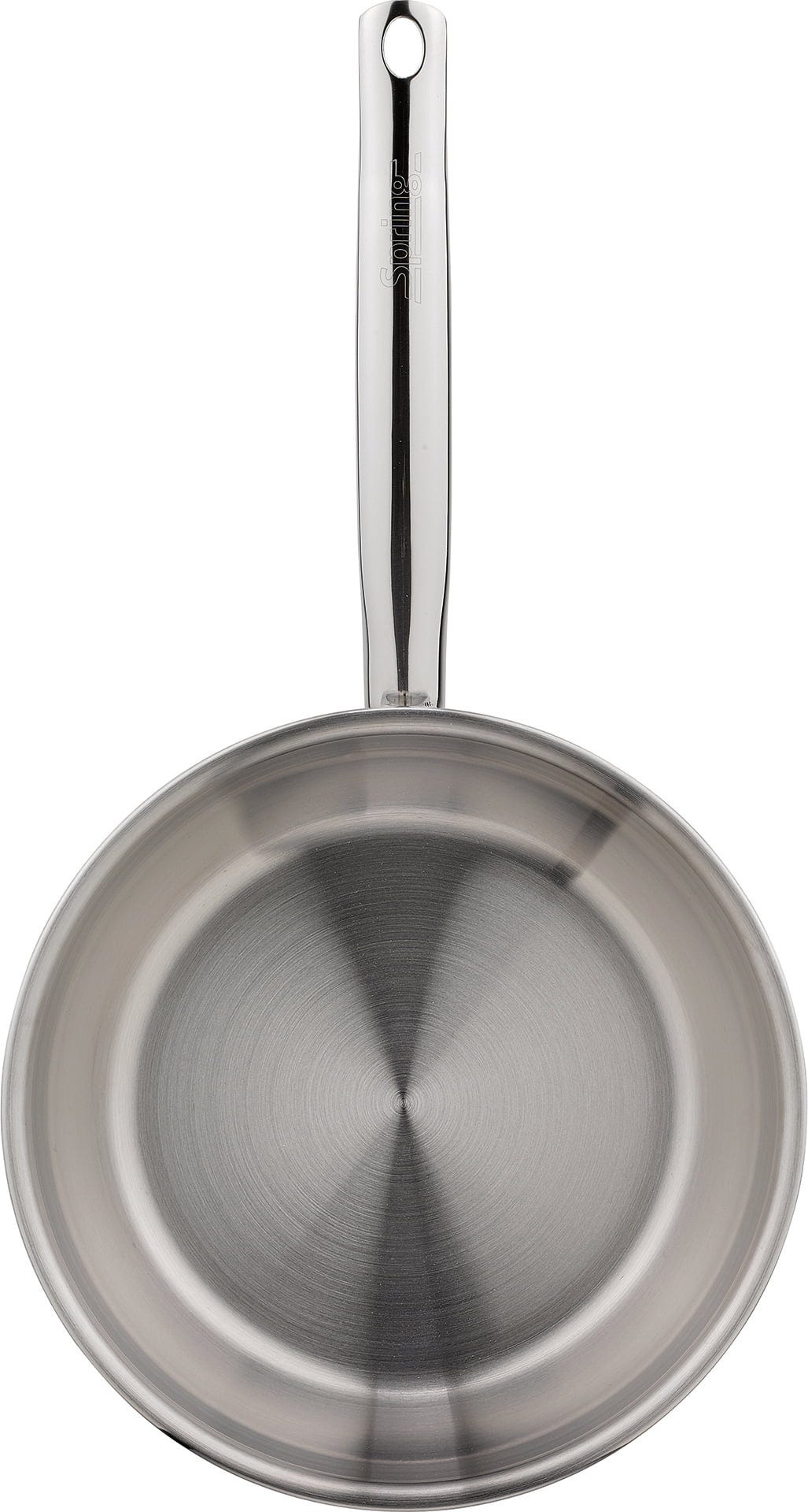 The waterproof, welded stainless steel handle rests ergonomically in the hand and offers maximum safety, even when things get hectic in the kitchen. Whether on induction, in the oven or when serving directly at the table, this sauté pan combines professional functionality with a timeless design. A rounded pouring rim makes pouring sauces a pleasure.